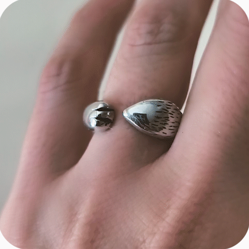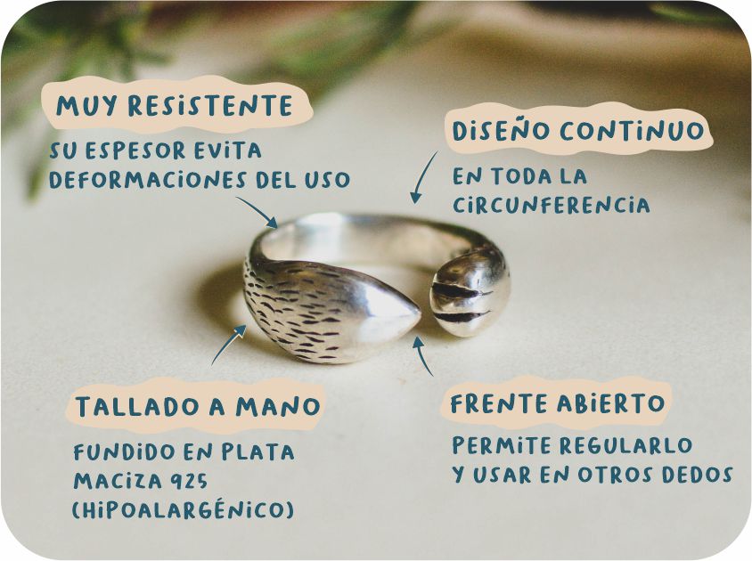 Esta pieza funde su esencia en un cálido abrazo. De un lado esa tierna patita que guarda mil historias y del otro esa cola esponjosa que brinda un cálido abrigo. Por eso ustedes me ayudaron a bautizarlo ANILLO ABRAZO DE ZORRO